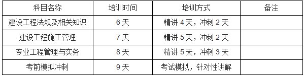 (二)培訓。中豐建科將為廣大學員提供更權威的的老師加以培訓,讓更多的學員都能夠通過二建,邁向一建。具體課時安排如下: