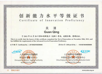 認(rèn)證考試形式:在校學(xué)生參加OSTA《創(chuàng)新能力水平等級(jí)證書》取證考試,無需考前按等級(jí)報(bào)名,只要按規(guī)定繳費(fèi)后,即可參加全國統(tǒng)一命題、統(tǒng)一考務(wù)管理的考試,并根據(jù)合格考生的成績(jī)(標(biāo)準(zhǔn)為:初級(jí)50~69分、中級(jí)70~89分、高級(jí)90分以上),分別由人社部鑒定中心和人社部培訓(xùn)中心聯(lián)合頒發(fā)相應(yīng)級(jí)別(初、中、高級(jí))的OSTA《創(chuàng)新能力水平等級(jí)證書》。