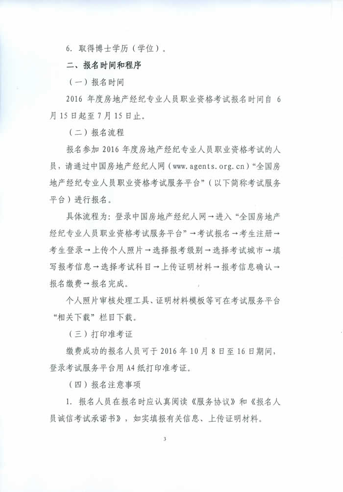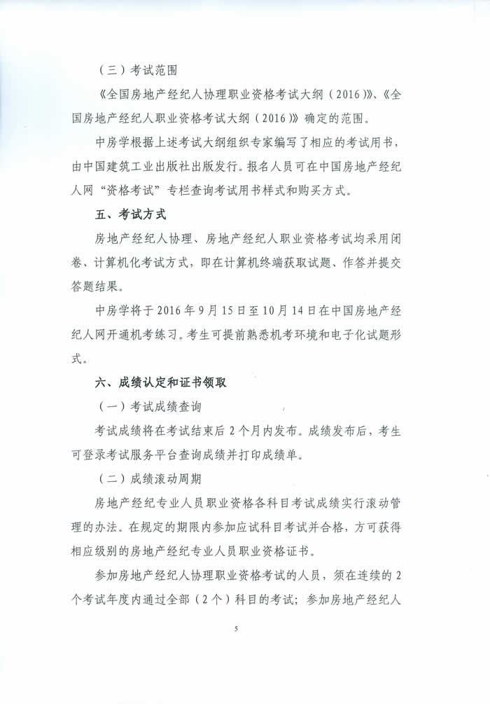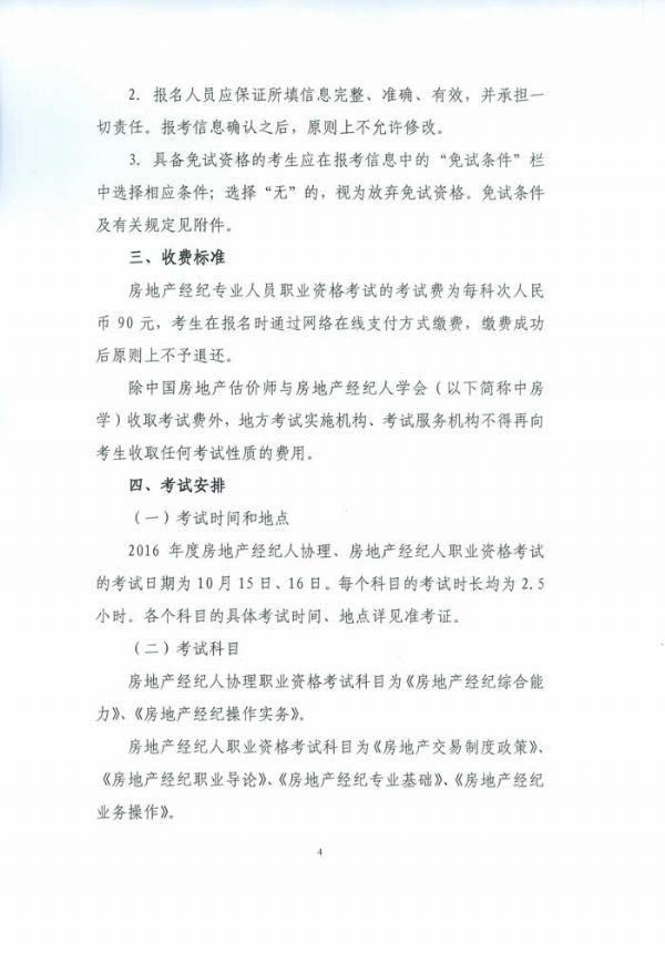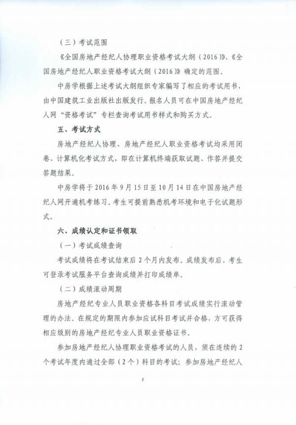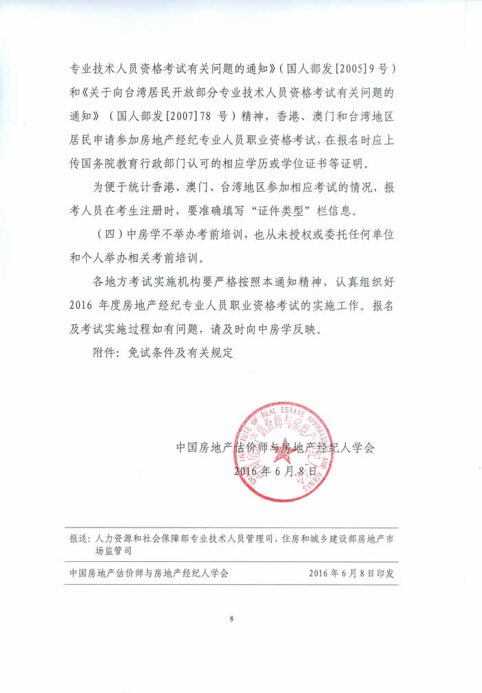 中房學關于2016年房地產經紀專業人員職業資格考試有關問題的通知