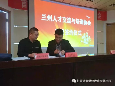 甘肅人大遠程培訓學校與思普瑞互聯網學院蘭州學習中心,蘭州卓越教育,甘肅言靈口才學校等8家機構成功簽約。