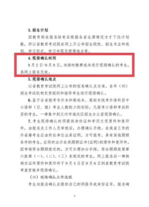9月2日-9月8日,未按時繳費或未進行現場確認的考生,其網上報名無效。