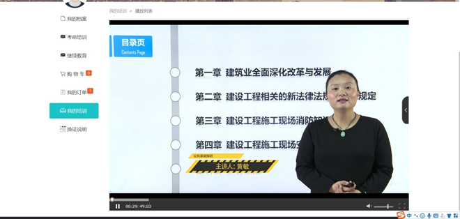 進入學習頁面后,課程自動播放。課件不支持快進或后退,全部課程學完可重播觀看。