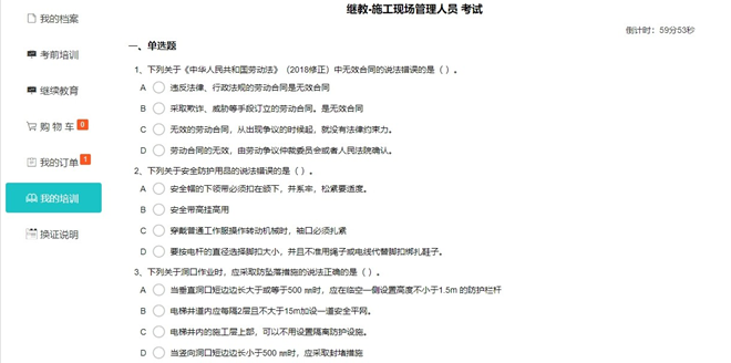 全部學時學習完成后,可進入在線考核環節,題目共 50 道,滿分 100 分,60 分(含)以上為合格。考核未通過的, 可繼續考核測試,直至合格為止,考核未通過不影響學時累計。