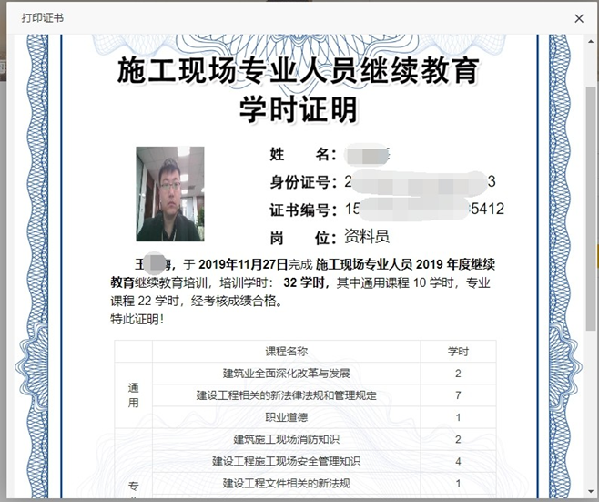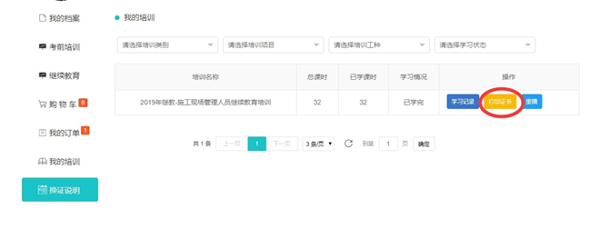 學時審核與考核全部通過后,可點擊【打印證書】查看 或下載學時證明。