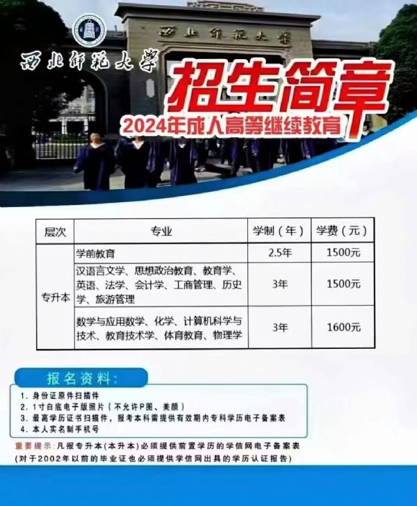 西北師范大學2024年高等學歷繼續(xù)教育招生簡章